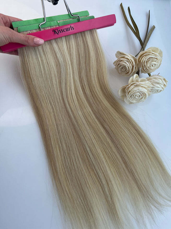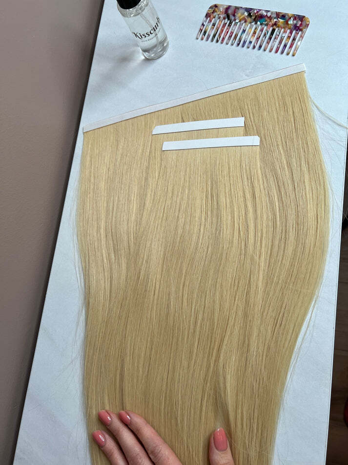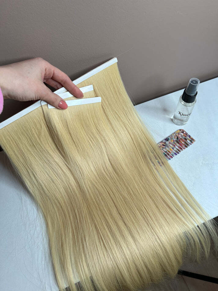 BIO TAŚMA — Zagęszczanie włosów i przedłużanie włosów Nasza innowacyjna technika produkcji bio taśm pozwala na tworzenie cienkich, giętkich i gęstych taśm do przedłużania włosów - BIO TAŚMY. Oferujemy wlosy na tasmie o różnych wagach i cenach, dzięki czemu nasi klienci mogą wybierać i doświadczać tej metody. Możesz zakupić pojedynczą, długą biotaśmę lub dwie mniejsze, aby zagęścić włosy w okolicach skroni. Doczepianie włosów stało się znacznie łatwiejsze |